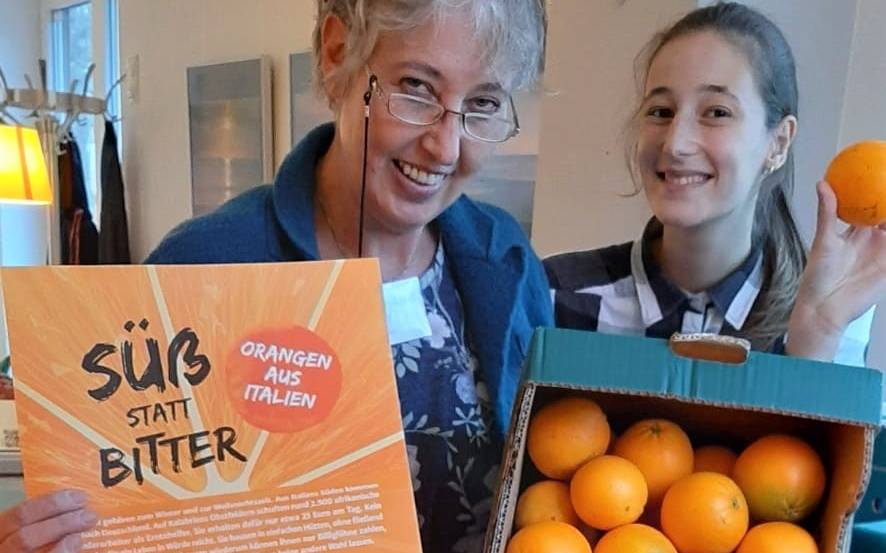 Im AllerWeltHaus gibt es zu Weihnachten wieder Orangen aus Italien. Die Früchte stammen aus Kalabrien, sind öko und fair und werden kartonweise verkauft.