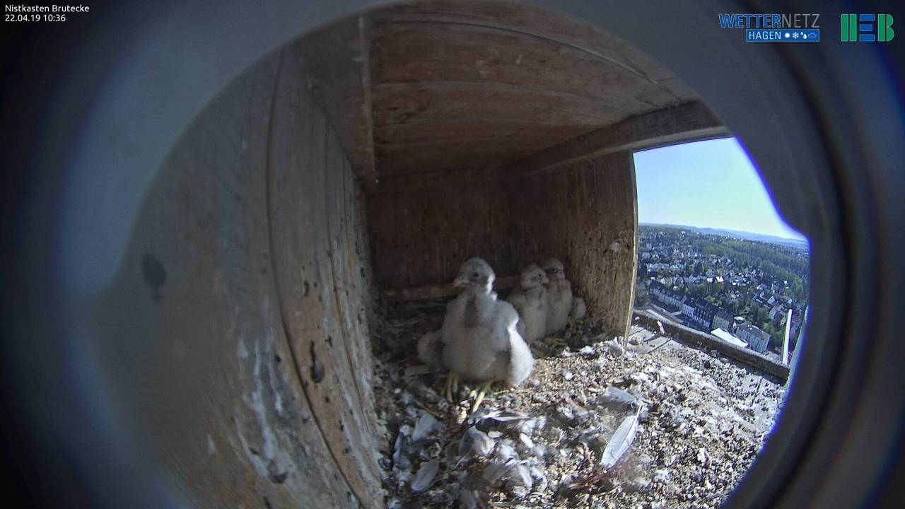 Mehrere Webcams sorgen dafür, dass jeder Interessierte zuschauen kann. Die Bilder werden von Wetternetz Hagen übertragen. Industrieanlagen wie die MVA in Hagen sind bei Falkenpärchen beliebt, weil sie dort in Ruhe ihre Jungen aufziehen können.