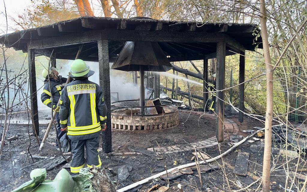 Entwarnung: Das Feuer am Quambusch ist gelöscht. Es brannte nicht, wie die Hagener Polizei zuerst vermutet hatte, das Vereinsheim, sondern ein Grillunterstand direkt daneben. Durch das Feuer gab es eine starke Rauchentwicklung.