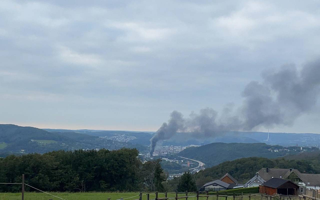 Die schwarze Rauchsäule ist weg - das Feuer in der Stahlwarenfabrik in Eilpe ist aber noch nicht unter Kontrolle. Die Feuerwehr ist im Moment dabei, die Becken mit Salzsäure in dem Betrieb zu löschen.