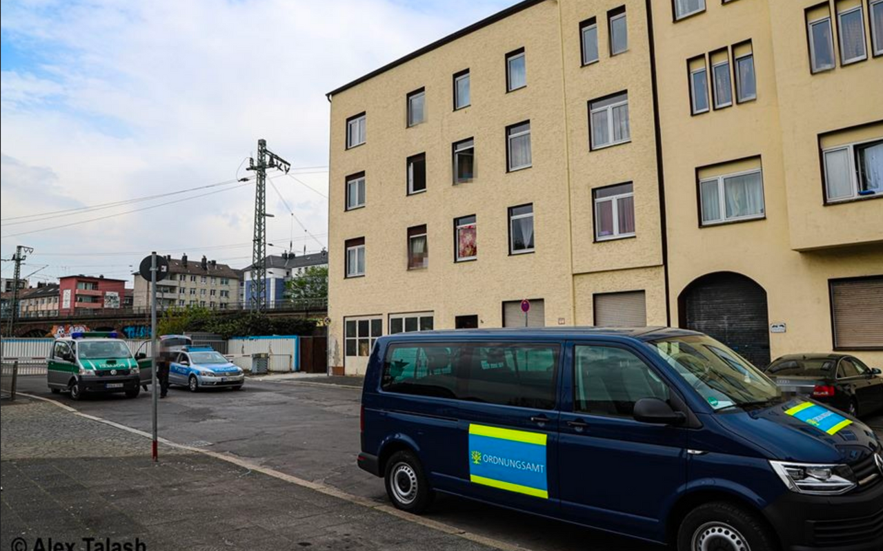 Das ganze Haus steht unter Quarantäne und wird vom Ordnungsamt bewacht. Aber nur auf der Vorderseite. Die beiden Männer sprangen aus dem ersten Sock auf ein Vordach und nutzten dann eine Leiter, um auf der Rückseite des Hauses über etliche Bahngleise in Richtung Innenstadt zu entkommen.