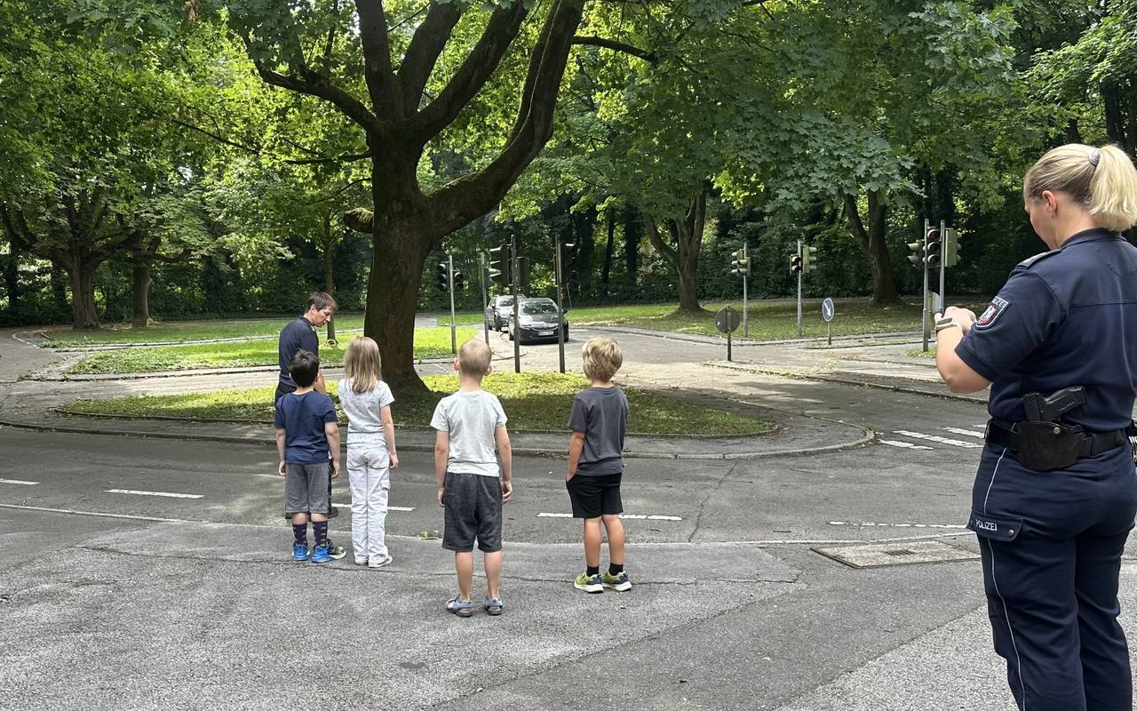 Der Übungsplatz ist umgeben von Bäumen und Büschen. Aus diesem Grund nennt Polizistin Viola Seel das Training "eine Reise durch den Dschungel". Sie spielte mit den Kindern "Stopptanz", bei dem die Kinder statt zu tanzen Tiere nachahmen sollten. Bei einem weiteren Spiel hielt die Polizistin einen roten und einen grünen Ball in ihrer Hand. Die Kinder sollten sich dann, wenn der rote Ball hochgehalten wurde, nicht mehr zu der Dschungelmusik bewegen. Die zwei Bälle sollten eine Ampelphase darstellen. Seel erklärt warum das Fußgängertraining so spielerisch aufgebaut wurde.