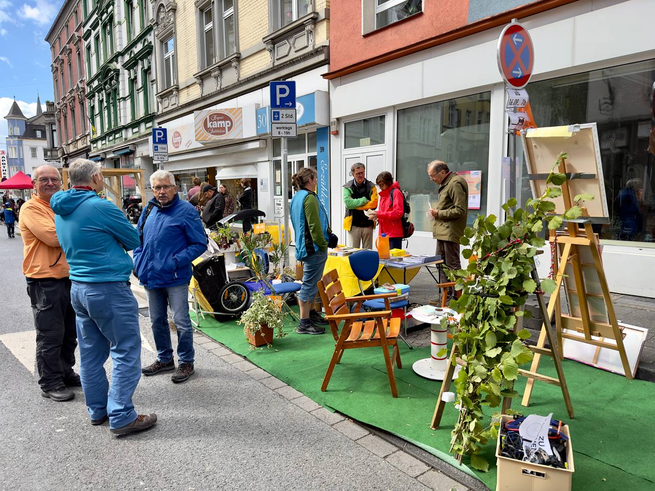 Die Lange Straße war von Freitag bis Sonntag für Autos gesperrt, die Parkplätze waren in etwa ein Dutzend Themenboxen umgestaltet worden. Das Cafe Gegenüber stellte Bestuhlung hin, schräg gegenüber gab es Anschauungsmaterial zu Urban "Farming", an mehreren Stellen gab es Platz für Kinder zum Spielen.