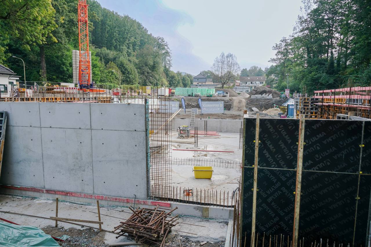 Noch ist es eine Baustelle. In etwas mehr als einem Jahr ist es das neue Bad Henkhausen - mit Teilüberdachung, und damit für einen Schwimmbetrieb über das ganze Jahr bereit. Gestern war Grundsteinlegung.