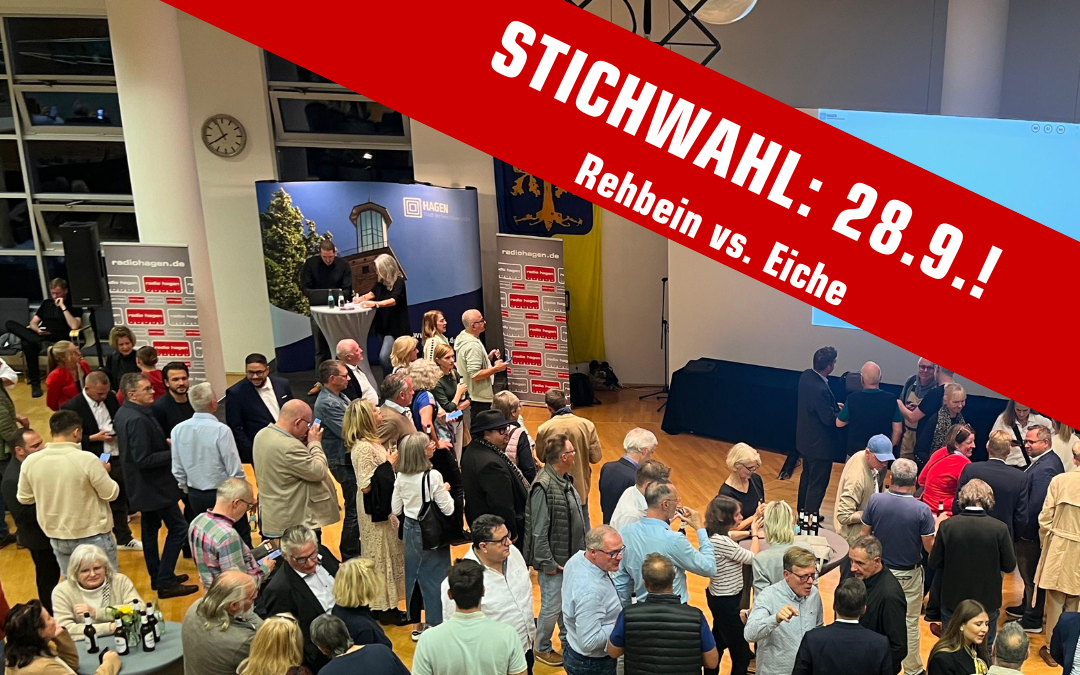 Hagen entscheidet über den neuen Oberbürgermeister für unsere Stadt. Bei der Wahl konnte keiner der Kandidierenden die absolute Mehrheit holen. Somit gehen die beiden Kandidaten mit den meisten Stimmen in die Stichwahl. Das sind Dennis Rehbein vor der CDU mit 25 und Michael Eiche von der AfD mit 21 Prozent der Stimmen.