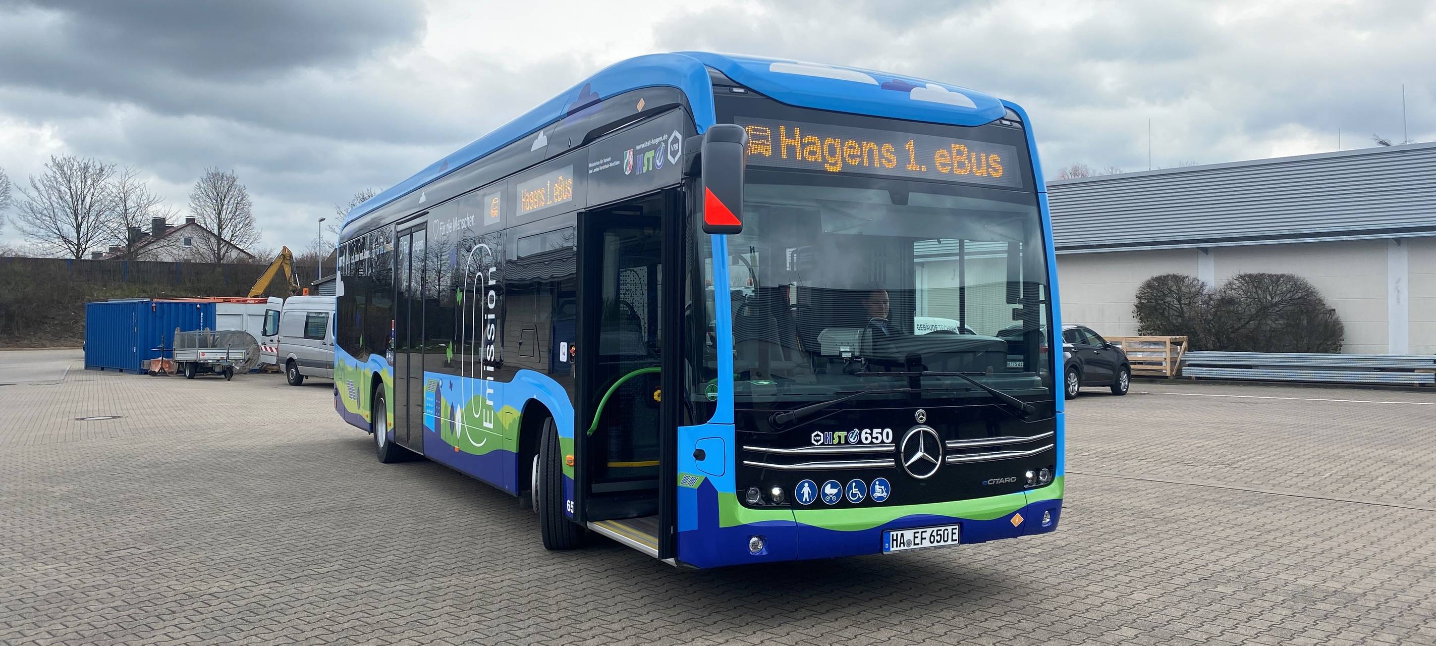 Ab dem 27. März fährt Hagens erster Elektrobus durch die Straßen. Erst einmal wird er auf der Linie 527 unterwegs sein.