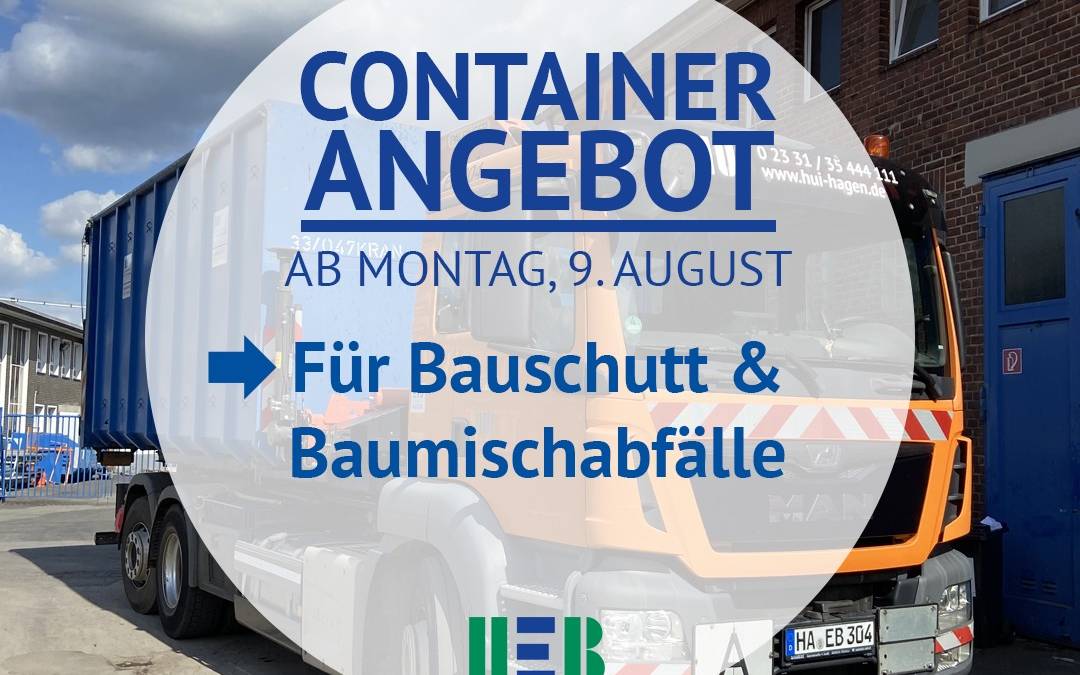 Im Hagener Stadtgebiet laufen die Aufräumarbeiten nach dem Unwetter vor drei Wochen weiter auf Hochtouren. Seit dem 16. Juli ist der Hagener Entsorgungsbetrieb von montags bis sonntags zwischen 6 und 21:30 Uhr in zwei Schichten unterwegs, um mit Sperrmüllwagen und Containern die großen Mengen an Sperrmüll, Elektroschrott und Sondermüll einzusammeln.Um die Aufräumarbeiten zu optimieren und zu beschleunigen, erweitert der HEB nun in Abstimmung mit dem Krisenstab der Stadt Hagen sein Angebot und bietet ab Montag, 9. August 2021, die Bereitstellung von Containern für unbelasteten Bauschutt und Baumischabfälle an.Der Preis für die Containergestellung und die Entsorgung der Abfälle kann aufgrund des aktuell hohen Entsorgungsdrucks erst im Rahmen der telefonischen Beratung mitgeteilt werden.Das Angebot richtet sich ausschließlich an private Haushalte, die vom Hochwasser geschädigt wurden. Der Hagener Entsorgungsbetrieb behält sich vor, Anfragen aus nicht-geschädigten Haushalten abzulehnen.Die Behälter können ab Montag, 9. August 2021, unter der Rufnummer 02331 3544-4111 (Mo – Do 7:00 bis 17:00 Uhr, Fr 7:00 bis 15:00 Uhr) bestellt werden. Der HEB stellt den Container zum vereinbarten Termin auf und holt den Behälter am Ende des Tages wieder ab.Die kostenlose Sammlung von Sperrmüll und Elektroschrott aus den betroffenen Gebieten wird darüber hinaus weiter fortgesetzt. Auch in der kommenden Woche ist der HEB im Zwei-Schicht-System unterwegs, um die betroffenen Hagenerinnen und Hagener zu unterstützen. Die genaueren Abholbereiche werden auf der Website und den weiteren Kanälen des HEB veröffentlicht und mehrfach täglich aktualisiert. Das Ende dieser Sammelaktion wird rechtzeitig kommuniziert.Das Herausstellen von Haus-, Sperr- oder Sondermüll in nicht vom Hochwasser betroffenen Gebieten ist eine illegale Abfallablagerung und wird entsprechend geahndet.