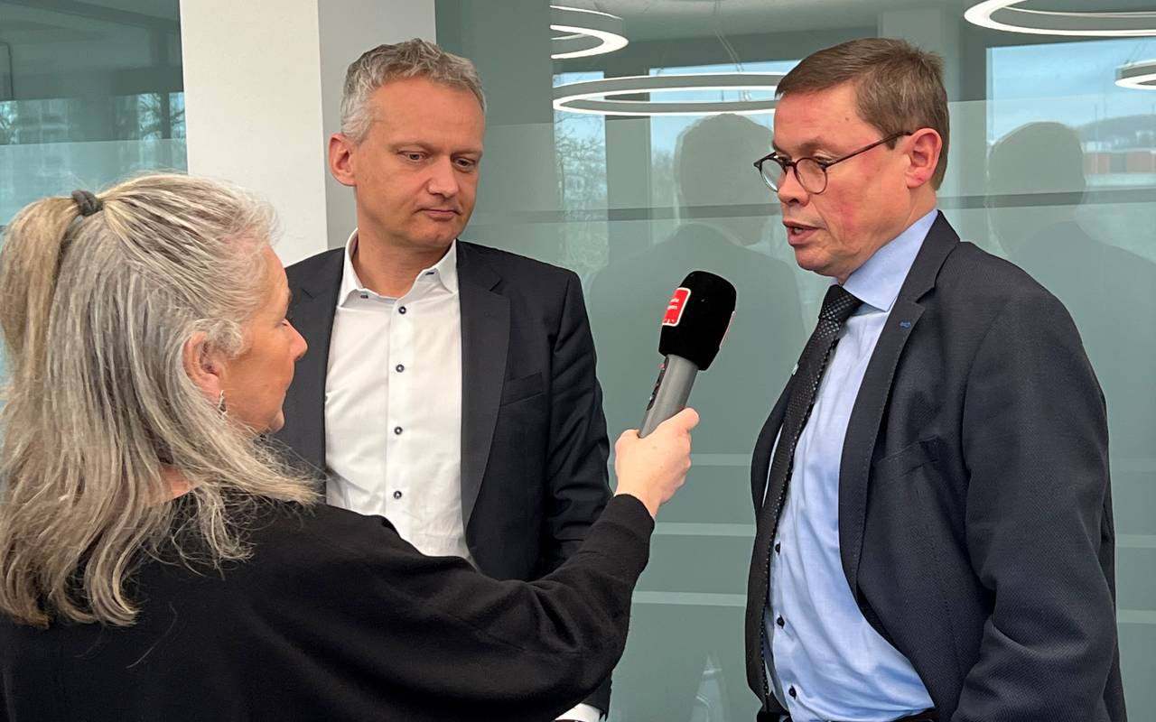 Radio-Hagen-Chefin Cordula Aßmann im Gespräch mit Dr. Ralf Geruschkat und Ralf Stoffels, Hauptgeschäftsführer und Präsident der SIHK.