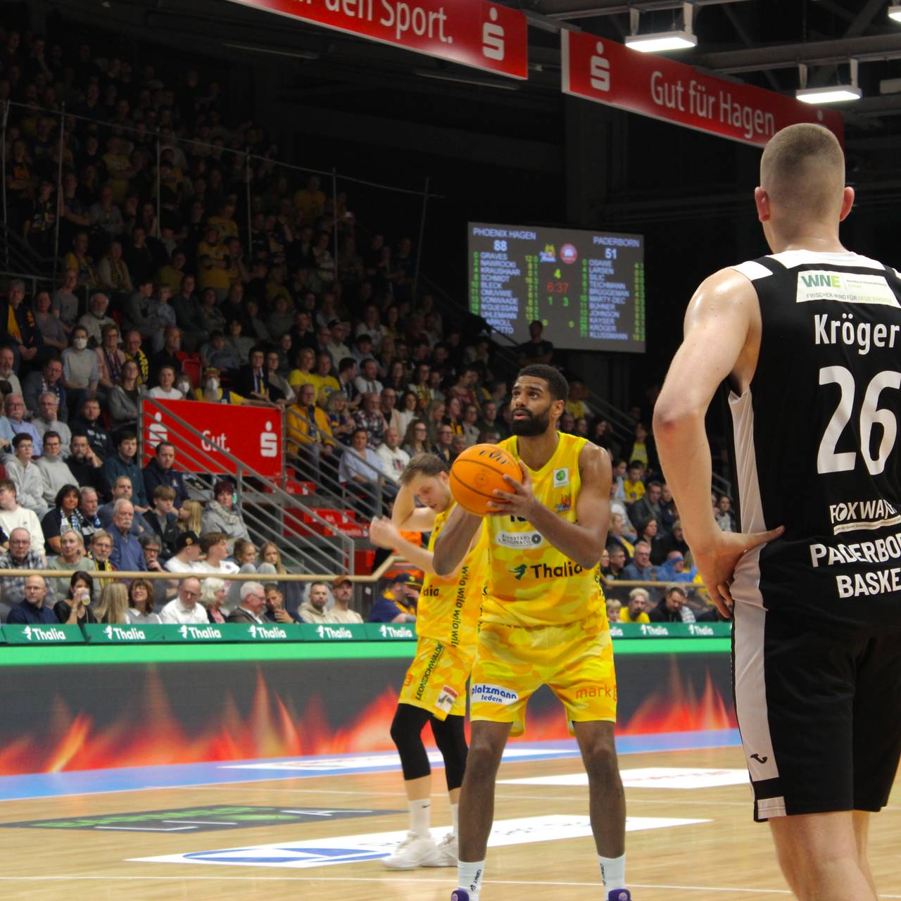 Volle Stimmung in der Ischelandhalle am Samstagabend! Die Tornados Hagen feiern ihr 15-jähriges Jubiläum und ziehen beim Phoenix Spiel gegen die Paderborn Baskets eine beeindruckende Choreo über die Tribüne. Der 103 zu 63 Sieg von Phoenix kann sich auf jeden Fall sehen lassen.