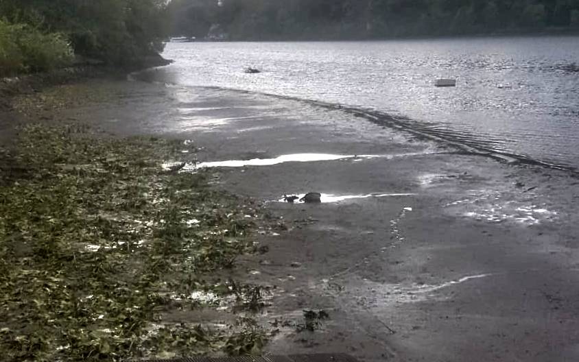 Seit dem Frühjahr finden am Stauwehr Sanierungsarbeiten statt: Die Pfeiler des Wehres waren nach 90 Jahren so angegriffen, dass die Abreiten nötig waren. Dazu wurde der Wasserspiegel des Sees deutlich abgesenkt.