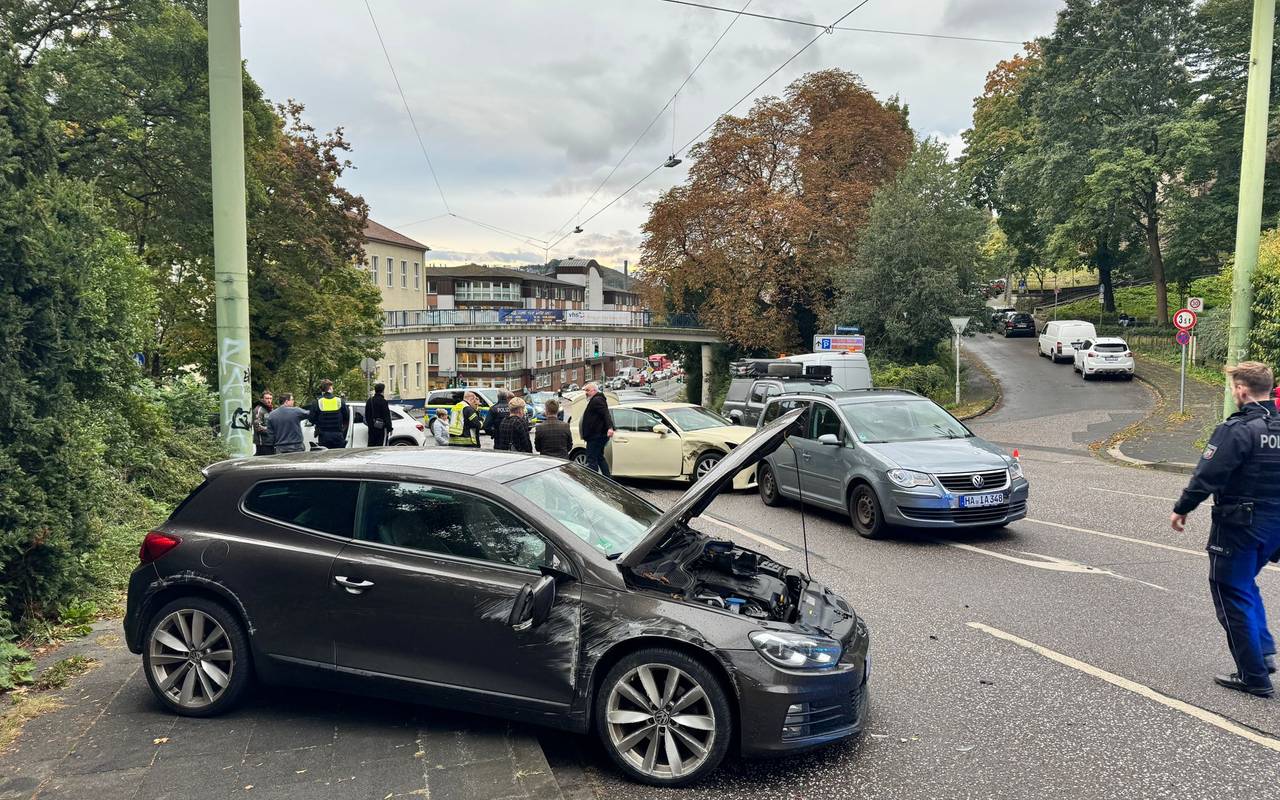 Bei einem schweren Unfall am Bergischen Ring ist heute früh um kurz nach acht ein Autofahrer leicht verletzt worden. Zwei Taxis sind an der Ecke zur Elfriedenhöhe zusammengestoßen, ein Auto landete auf dem Dach.