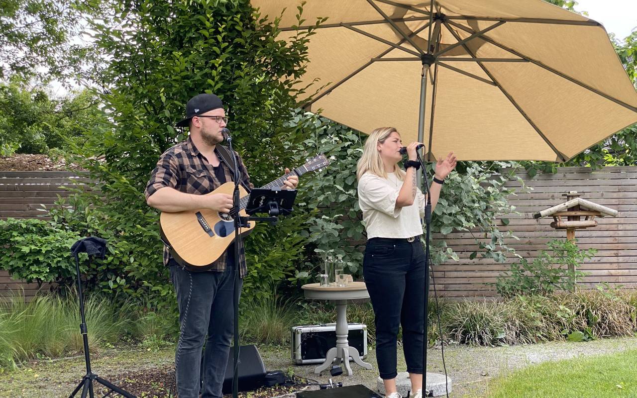 Bei dem Wetter kriegt man langsam aber sicher immer mehr Lust auf Gartenpartys. Und tatsächlich hat gestern eine stattgefunden, also natürlich im kleinen Rahmen. Aber trotzdem: Das stationäre Hospiz am Höing hat das Musik-Duo HonigMut eingeladen. Die konnten ja auch lange nicht richtig auftreten - deswegen fanden es Melina und Nando von der Gruppe umso schöner jetzt im Garten des Hospizes singen zu können.