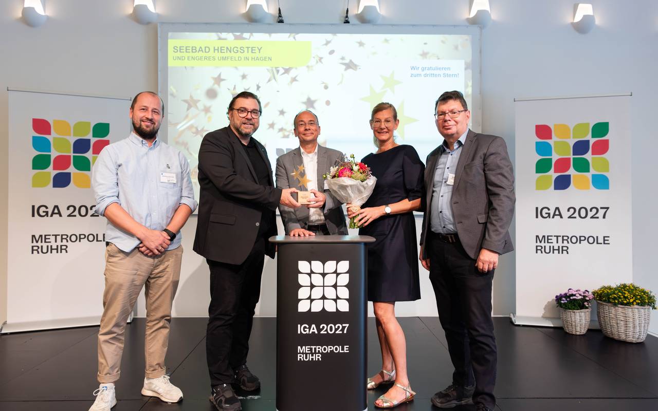 Das Seebad Hengstey hat gestern einen dritten Stern von den Verantwortlichen der IGA 2027 bekommen. Die IGA - internationale Gartenschau - zieht sich über die komplette Metropole Ruhr - auch andere Städte planen größere Projekte im Sinne der IGA. Das Treffen mit der Sternverleihung gestern in Mülheim diente auch dazu, einen Überblick über die Entwicklung dieser Projekte zu geben und Meilensteine zu feiern.