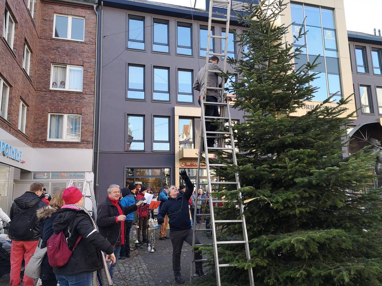 Seit vielen Jahren schmücken die Hasper ihren eigenen Weihnachtsbaum am Torhaus. In einer gemütlichen Runde mit Posaunenchor gehts ans Schmücken. Der Baum wurde auch in diesem Jahr wieder vom Evangelischen Krankenhaus in Haspe gespendet. Jeder Hasper konnte etwas Deko mitbringen und die Tanne schmücken.
