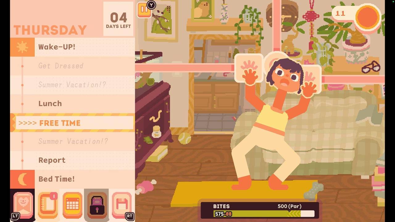 Wer zu viele Bites erwischt, kann sich in der Freizeit etwa dazu entscheiden, Sport zu treiben und die Bites für den Tag zu reduzieren. Mit Hausarbeit verdient Jenny Geld, das sie dann in Snacks oder Make-up investieren kann, was ihr Boni bringt. Und natürlich stehen auch immer wieder Schularbeiten auf der To-do-Liste für die aktuelle Woche. All das ist in unterhaltsame und süße Minigames verpackt.