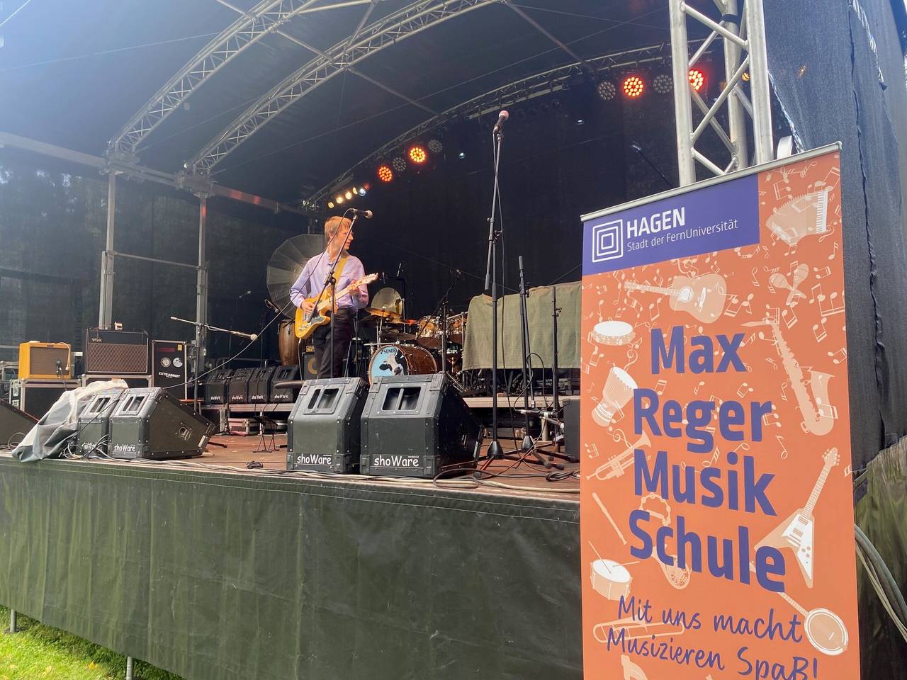 Auch der Fachbereich Rock, Pop und Jazz hat mitgefeiert. Sie hatten 40-jähriges Jubiläum. Insgesamt gab´s viel Livemusik mit dem Schwerpunkt Rock- und Popmusik auf vier verschiedenen Bühnen. Neben einigen Bands durften auch die Schüler der Musikschule auf der großen Bühne performen.