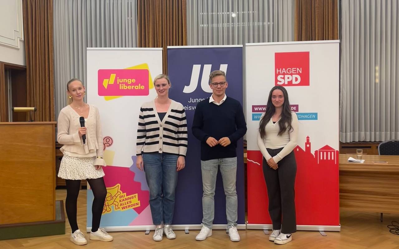 Unter dem Titel "Wortwechsel – Junge Politik diskutiert Kommunales" haben sich in Hagen Vertreterinnen und Vertreter der Jugendorganisationen von CDU, SPD und FDP zu einer offenen Podiumsdiskussion getroffen. Hier gibt es die Infos!