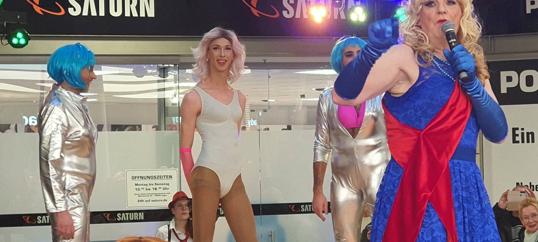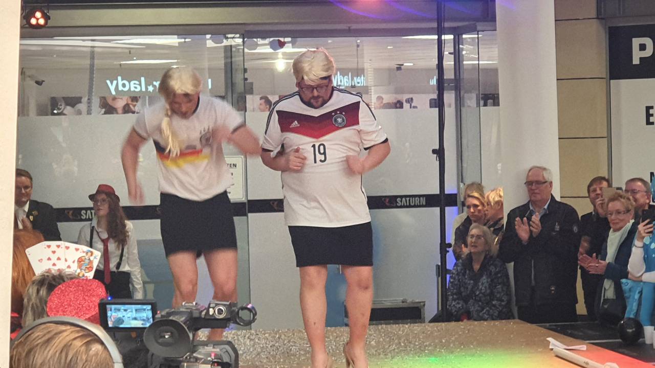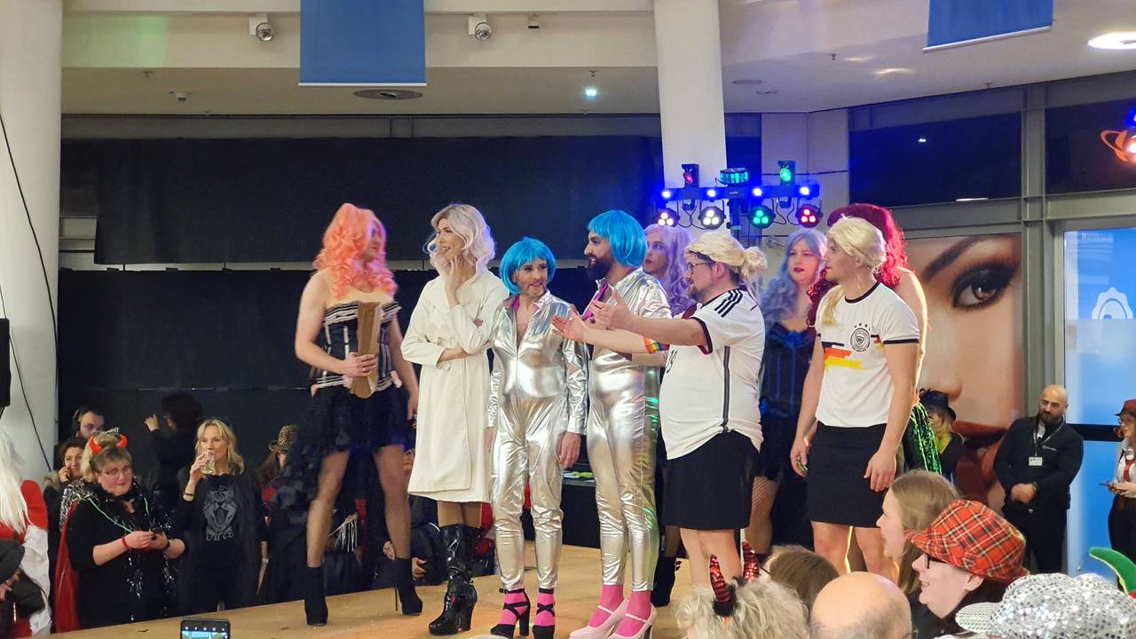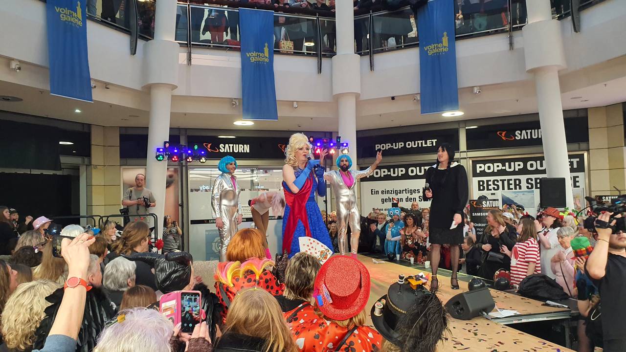 An Weiberfastnacht gab es nach zwei Jahren Corona-Pause das große Fummellauf-Comeback. Hunderte Menschen haben in der Volme Galerie zugeschaut, wie Männer auf hochhackigen Schuhen um die Wette getanzt haben.