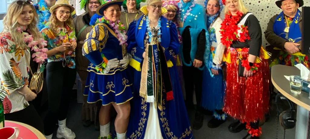 Hoher Besuch an Weiberfastnacht: Prinzessin Mandy I. hat mit ihrem Gefolge in unserem Studio bei Moderator Timo Hiepler vorbeigeschaut. Bei Sekt wurde am Mikrofon geplaudert und auf das Karnevalswochenende geschaut.