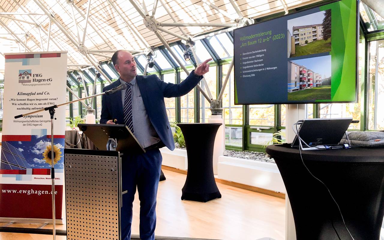 Hagen ist auf dem Klimapfad. Das Ziel ist eine Klimaneutralität zum Jahr 2045, aber wie sieht der Weg dahin aus? Die Eisenbahner Wohnungsgenossenschaft hatte gestern zu einem Symposium eingeladen, um genau darüber zu reden. Eingeladen waren Akteure aus der Stadtverwaltung und Wohnungswirtschaft.