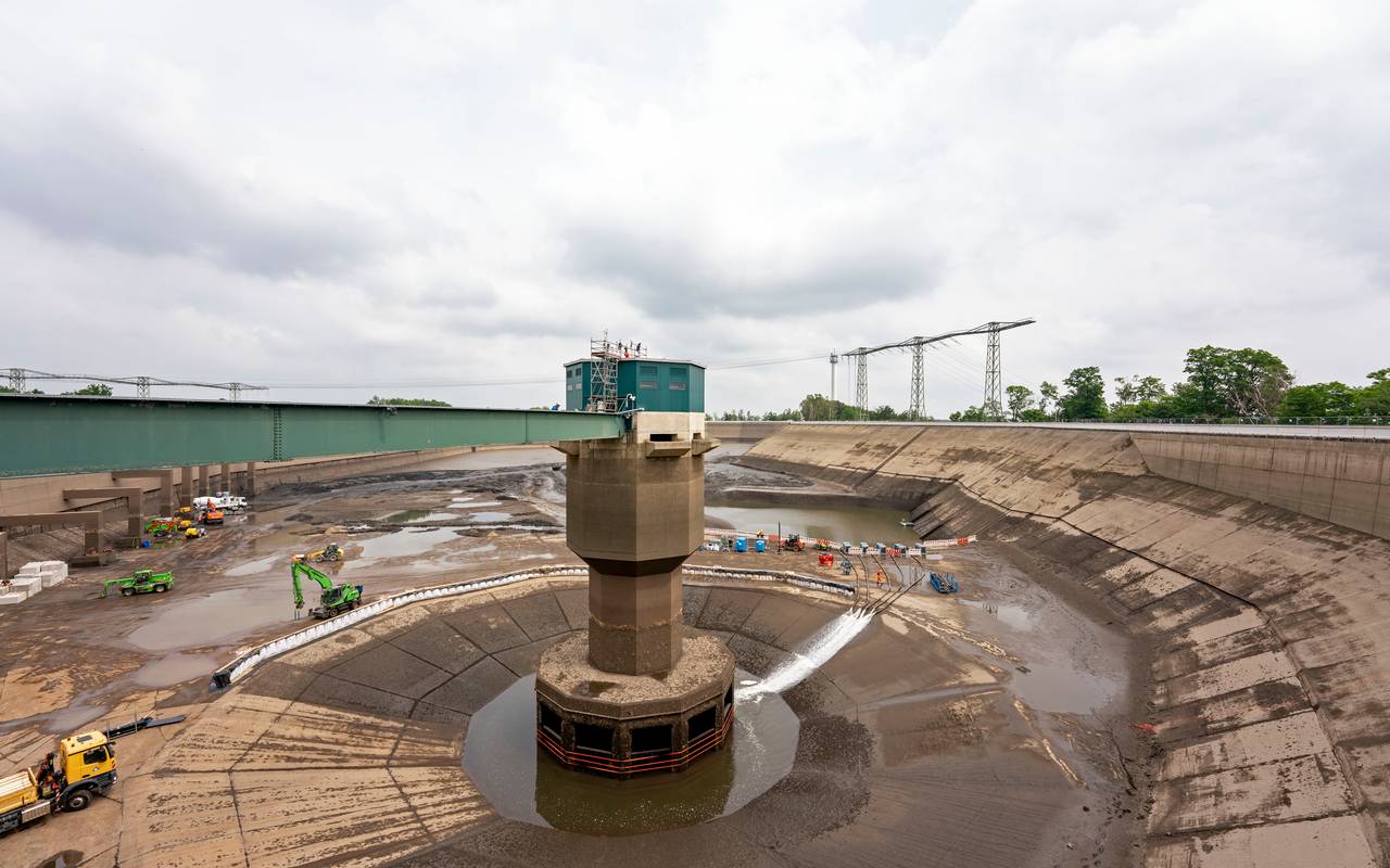 Der Hengsteysee ist diese Tage überraschend voll, weil das Becken oben leer ist. Experten prüfen, ob das Bauwerk aus dem Jahr 1930 noch dicht ist. Außerdem muss der gigantische Stöpsel ausgetauscht werden, mit dem man das Wasser entweder oben hält oder nach unten in den See rauschen lässt. 15 Mio Euro kosten die Arbeiten die RWE. Sie sind für zehn Wochen geplant. Nächstes Jahr im Februar kommt der zweite Teil der Sanierungsarbeiten.