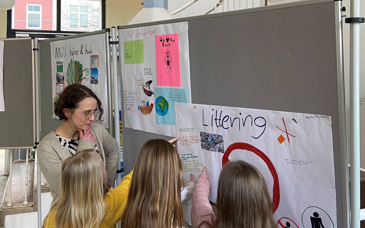 Im letzten Sommer wurde am Fichte-Gymnasium eine Umwelt-AG gegründet, beteiligt sind Schülerinnen und Schüler der 5. und 6. Klassen, die sich mit Themen rund um den Umweltschutz wie Nachhaltigkeit oder Ressourcenschonung beschäftigen. Gemeinsam mit dem HEB haben sie auch eine Ausstellung unter dem Motto "Müll gehört nicht in die Umwelt" organisiert, dazu wurden Plakate entworfen und ein kurzer Film gedreht.