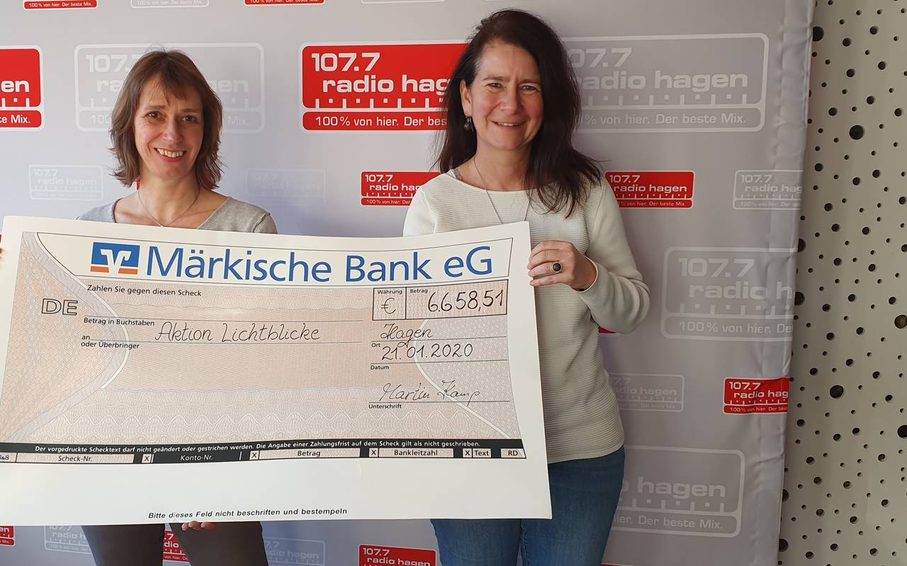 2019 hat die Stadtbäckerei Kamp, zusätzlich zum Erlös aus dem Verkauf der Lichtblicke-Sterne, in einigen Filialen die ganze Weihnachtszeit durch für unsere Aktion gesammelt. Jetzt gibt's das Endergebnis. 6658,51€ überreicht Geschäftsführerin Stefanie Kamp an unsere Chefredakteurin Cordula Aßmann am 21.01.2020 für die Aktion Lichtblicke.