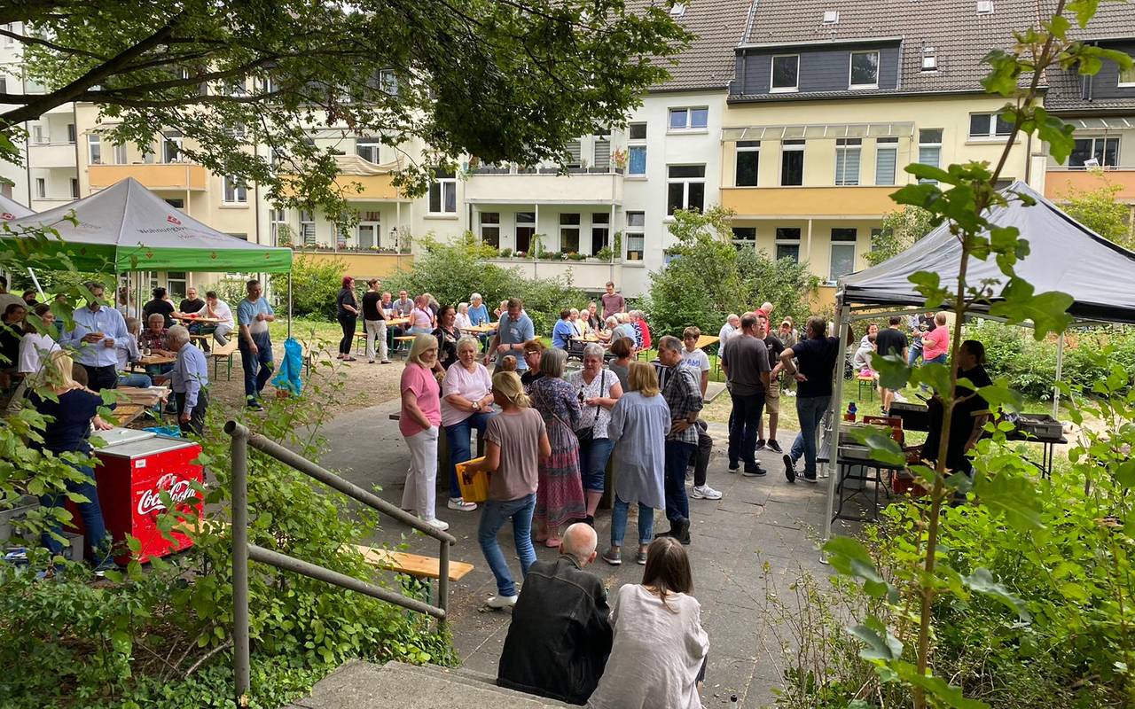 Im Mai ist ein Tornado durch Hagen gewütet. Die Karl-Halle Straße hat es auch schwer getroffen. Es sind Bäume im Innenhof umgekippt, der Spielplatz wurde zerstört und einige Dächer wurden beschädigt. Von den Schäden ist allerdings nichts mehr zu sehen. Der Wohnungsverein hat direkt nach dem Unwetter mit dem Aufräumen angefangen und die Dächer geflickt. Der Innenhof war für kurze Zeit nicht begehbar, anders wurden die Mieter aber nicht getroffen. Verletzte gab es zum Glück keine und um das zu feiern, hat die Wohngesellschaft die rund 140 Mieter zu einem Fest eingeladen. Der Vorstand des Vereins, Sebastian Greese erzählt mehr zu dem Event.