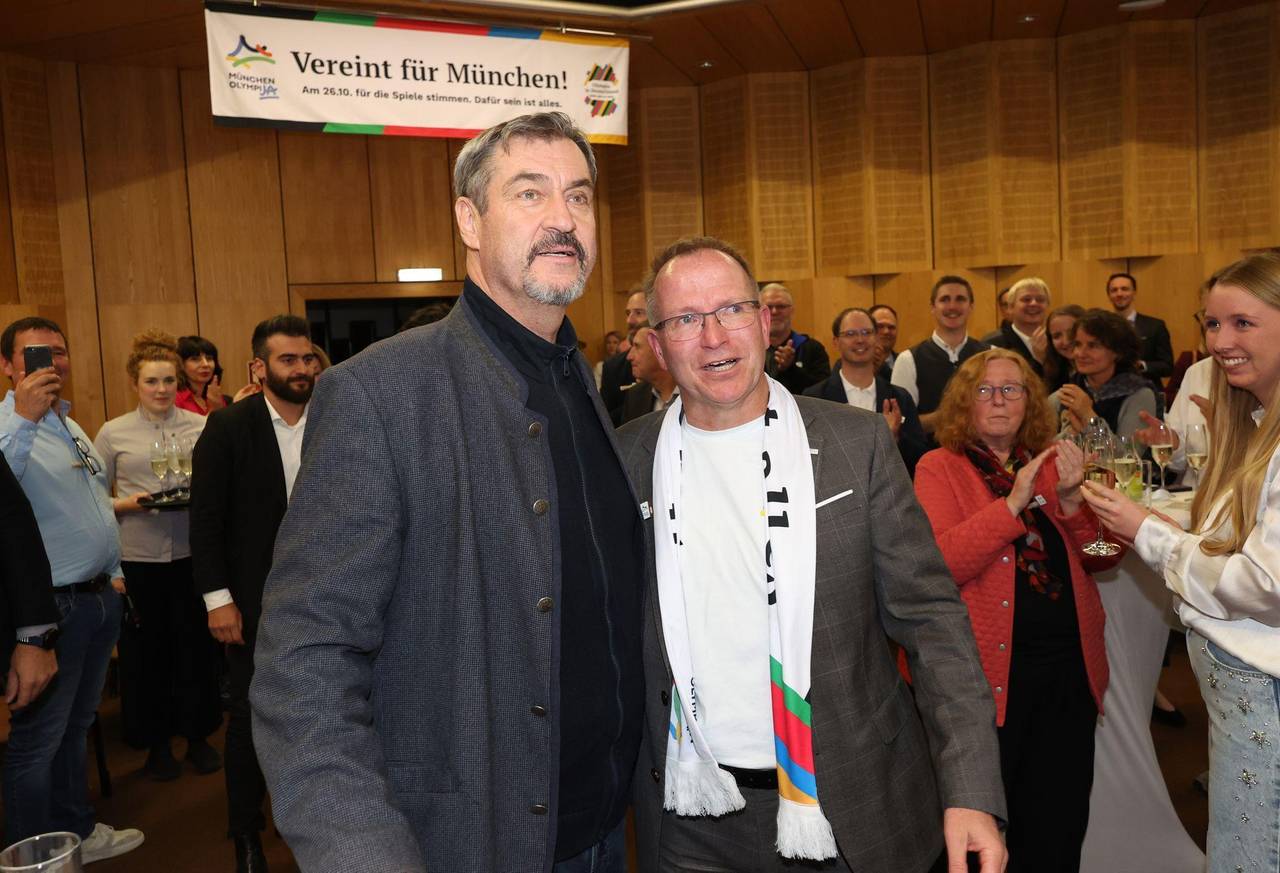 Ministerpräsident Markus Söder (l) und Landes-Sportverbandschef Jörg Ammon sehen Münchens Bewerbung international mit den besten Chancen.