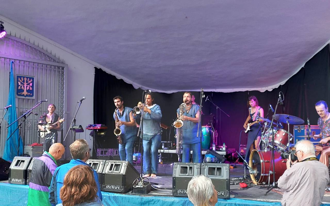 Gute Musik hat heute Abend der Muschelsalat in den Volkspark gebracht. Die Band Muito Kaballa ist dort aufgetreten und hat mit ihren Songs dem Publikum Laune gemacht.