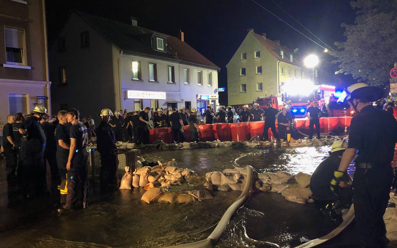 Zur Zeit wird das Wasser über eine andere Leitung in die betroffenen Haushalte eingespeist. Ein Rohrbruch hatte vergangene Woche den Bereich Seilerstraße/Heckenweg unter Wasser gesetzt. Das Wasser überflutete Straßen und Keller, 180 Leute mussten ihre Wohnungen räumen und wurden vom DRK betreut. Warum die Leitung kaputt gegangen ist, kann man bisher nicht sagen. Bis um Wochenende sollen die Arbeiten an der neuen Wasserleitung beendet sein.