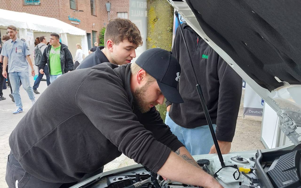 Fokus der diesjährigen Ausbildungsmesse: Selbst ausprobieren können. Das konnte man an vielen verschiedenen Stationen. Selbst einen Reifen wechseln, einen Menschen reanimieren oder selbst Dachziegel zurechtschlagen. Viele interaktive Möglichkeiten gab es vor Ort.