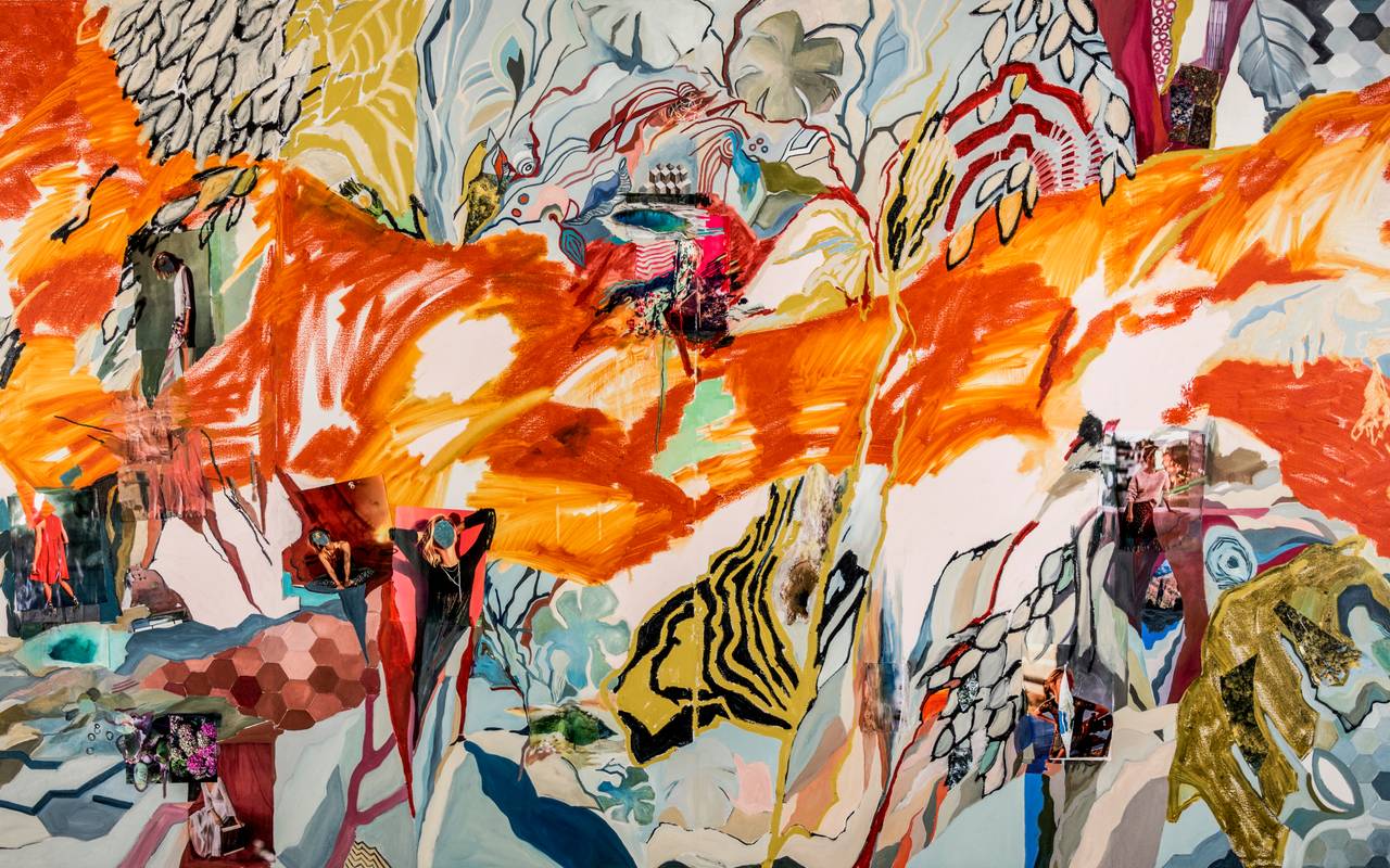 Die neuen Gemälde der Künstlerin zeigen die Natur und Gesellschaft auf farbenfrohe Weise. Aber auch ältere Bilder von Khorasantchi werden gezeigt, in denen sie ihre Kindheit im Nachkriegs- Deutschland darstellt und verarbeitet.
