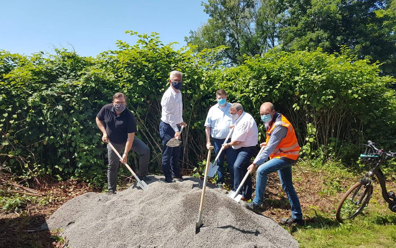 Radfahrer und Fußgänger in Hengstey können sich jetzt schon auf das nächste Jahr freuen. An der Volmemündung wurde heute der Spatenstich für den Neubau der Fuß- und Radwegbrücke über die Volme gesetzt.