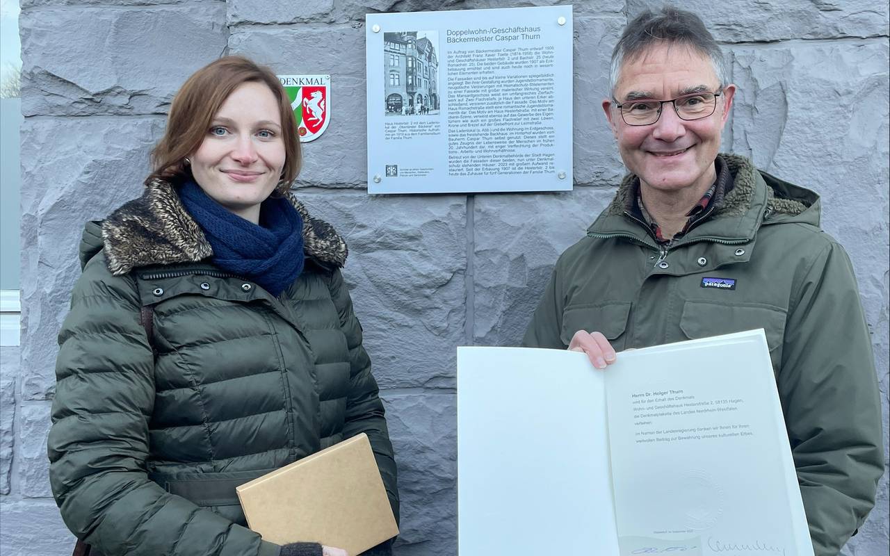 Mit am Projekt beteiligt war neben der Unteren Denkmalbehörde der Stadt Hagen auch der Hagener Heimatbund. Dieser hat gemeinsam mit Thurn eine Tafel entwickelt, die über die Historie der Gebäude erzählt.