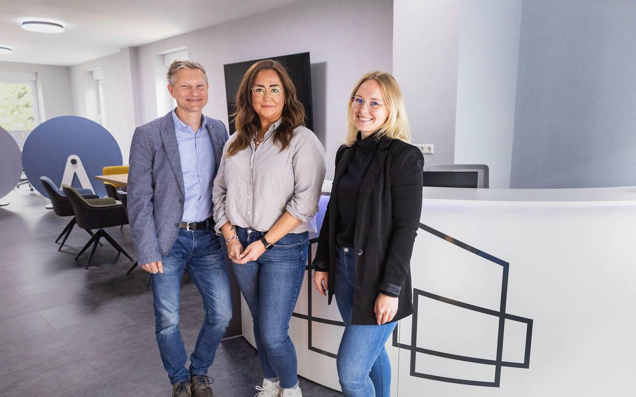 Foto: Finanzmakler Robert Marquas mit Laura Brähler (Stadt&Handel) und Larissa Gronemeyer (Stadt Hagen).