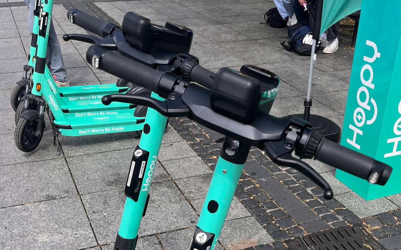 Nachdem sich der E-Scooter-Anbieter ,,Zeus'' verabschiedet hatte, kommt damit ein neuer Anbieter in die Stadt. Heute Vormittag hat sich das Unternehmen ,,Hoppy'' auf dem Berliner Platz am Bahnhof vorgestellt. Die türkisen Scooter sollen ab Anfang nächster Woche befahrbar sein. Vertreter des Startups Dimitri freut sich bereits auf den Start.
