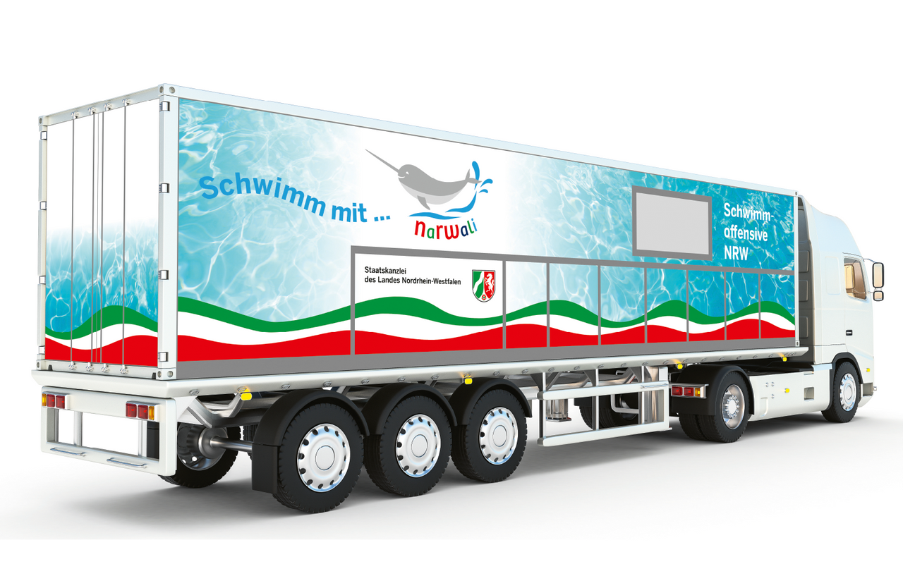 Wo diese "Narwalis" bald stehen, ist an sich egal. Schließlich soll ein solcher Schwimmcontainer an ganz unterschiedlichen Orten Halt machen - beispielsweise an Schulhöfen, Rathausvorplätzen oder Fußgängerzonen. Die Entscheidung treffen final die zuständigen Partner vor Ort in den fünf Regierungsbezirken Arnsberg, Detmold, Düsseldorf, Köln und Münster. Diese Partner sind entweder Schwimmvereine oder ein Kreissportbund.