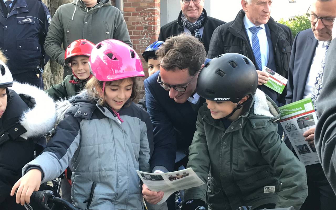 NRW Verkehrsminister Wüst übergibt Radfahrtestbögen an Grundschulen