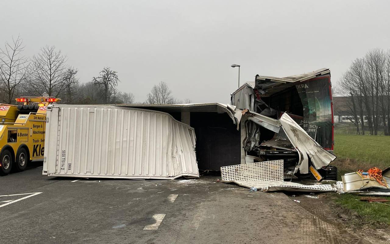 Warum die Achse sich löste, ist noch nicht klar, die Folgen waren aber drastisch. Der Paket-LKW war nicht mehr steuerbar und krachte in die Leitplanke. Außerdem stieß er mit einem dort parkenden Auflieger zusammen. Der 38-jährige Fahrer ist unverletzt.