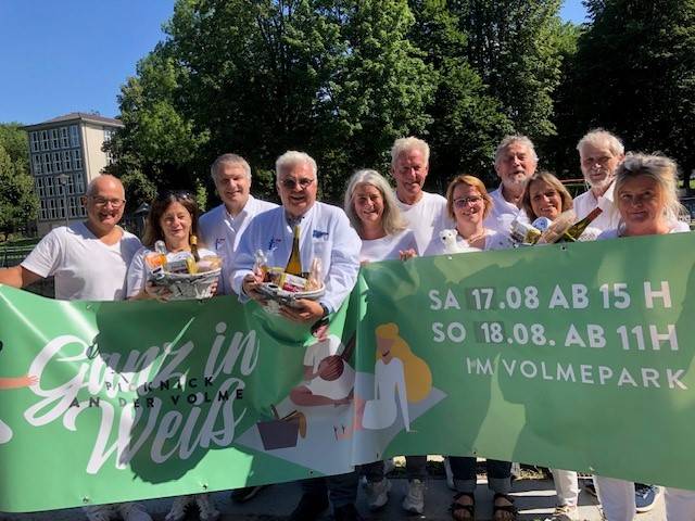 Weiß gedeckte und dekorierte Tische warten am 17. und 18. August im Volmepark auf Gäste. Am letzten Ferienwochenende gibt es dann dort wieder das Picknick an der Volme - ganz in weiß. Jeder kann kommen, sein eigenes Picknick mitbringen oder sich am Kuchen- und Getränkestand versorgen, die Tische belegen und dort ein paar unbeschwerte Stunden mit Freunden und Familie direkt neben der Volme verbringen. Es gibt an beiden Tagen ein Musikprogramm, außerdem Mitmach-Aktionen und Informationen zum Thema "Weiß in der Natur". Der Sonntag startet mit einem Gottesdienst im Park.