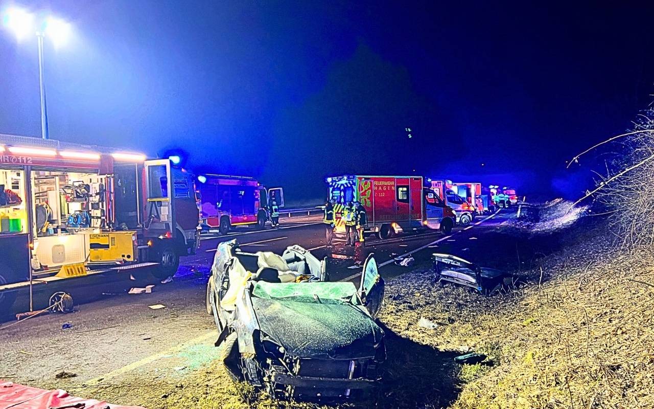 Bei einem Unfall auf der Autobahn 1 wurden in der Nacht auf heute vier Menschen schwer verletzt. Passiert ist das in Fahrtrichtung Dortmund kurz vor der Anschlussstelle Hagen-West.