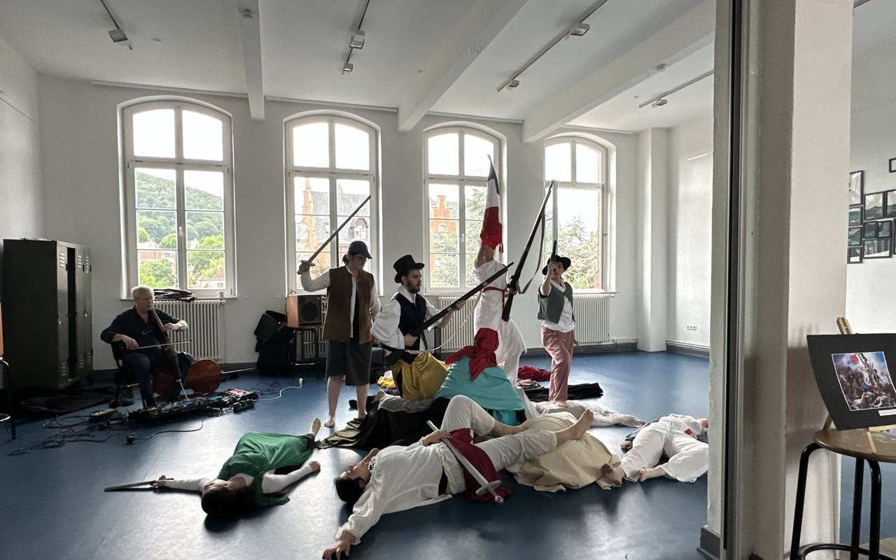 Die Jugendlichen haben mit Hilfe von Tüchern, Kostümen und verschiedenen Attrappen verschiedene Portraits nachgestellt und sie somit zum Leben erweckt. Im Hintergrund lief live Instrumental Musik. Die leichte Kleidung ermöglichte schnelle Standbildwechsel. Projektleiterin Maja Weimann von Defakto war auch vor Ort. Defakto ist ein Unternehmen, dass den Jugendlichen dabei hilft, Arbeit zu finden. Auch die Besucher wurden involviert und sollten in der zweiten Phase ebenfalls Standbilder zum Thema "Arbeit" verkörpern. Weimann erklärt wie es zu dem Projekt kam.