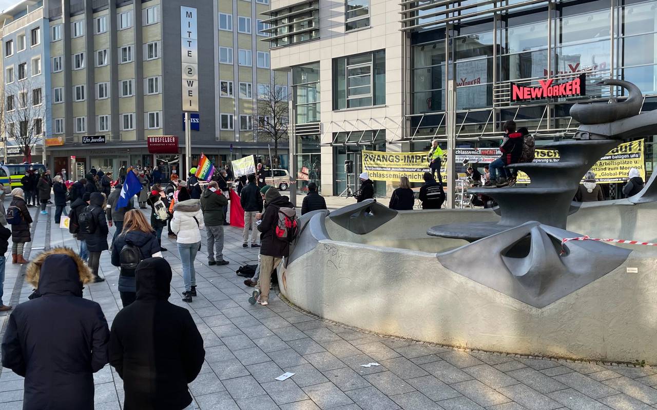 Die Redner auf der Bühne am Solitär variierten dabei die Grunderzählung der Querdenkerszene: Covid sei gar nicht so gefährlich und werde aufgebauscht, damit die Grundrechte ausgehebelt werden können. Die Polizei hatte den Ablauf mit den Veranstaltern vorher besprochen. Die Standkundgebung blieb friedlich, sagt Polizeisprecherin Ramona Arnhold.