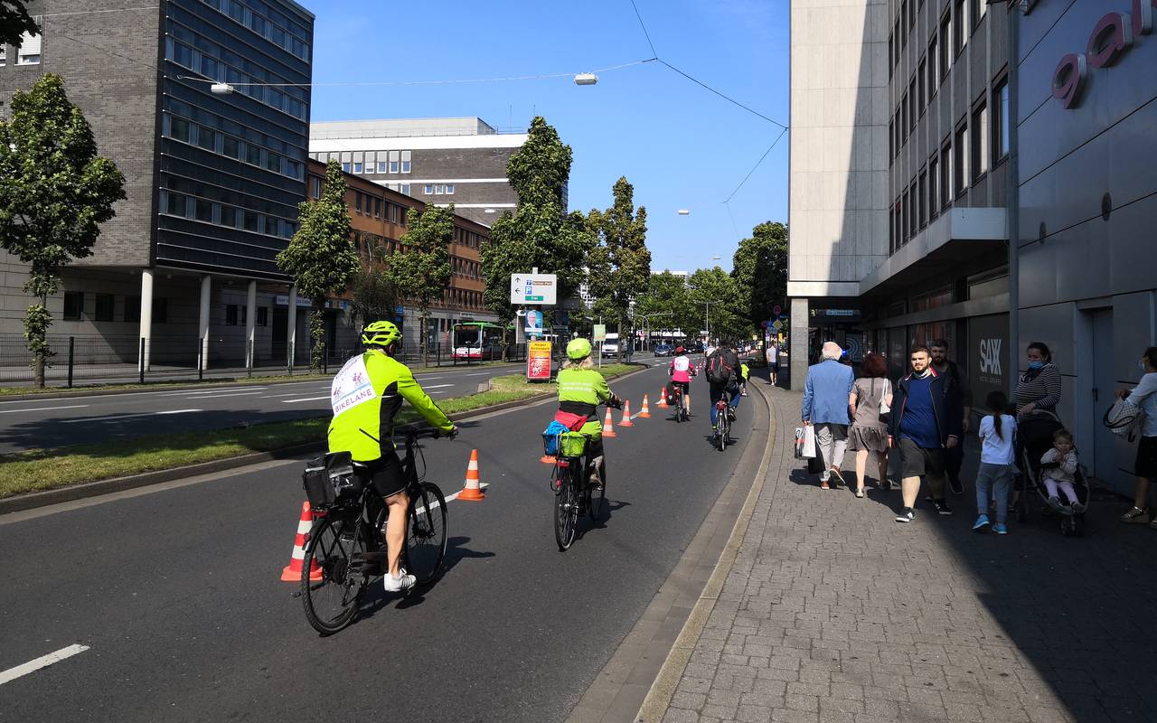 Vor dem Hauptbahnhof wurde eine Spur des Graf vonGalen-Rings gesperrt. Da wurde dann ein 300 Meter langer Radweg provisorisch eingerichtet. Unser Reporter Julius Hentges hat sich bei bestem Wetter mal auf den Weg gemacht und geguckt, was da so los war.