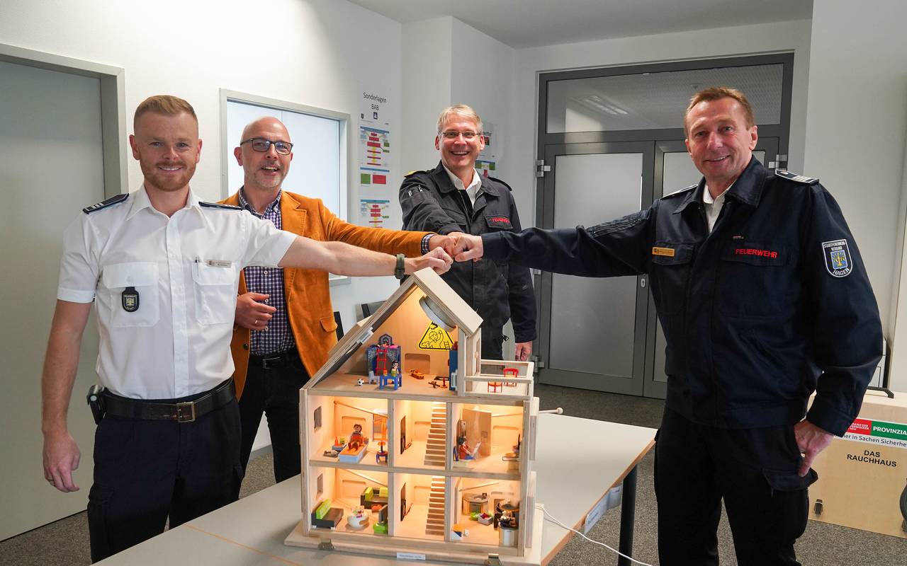 2,5 Geschosse hat es, und sein Sinn ist es, Brandrauch durch die Zimmer und Geschosse zu schicken. Das dient dann der Brandaufklärung. Wie schnell Rauch sich im Haus verteilt., wie schnell er die Treppenhäuser unpassierbar macht - das lässt sich mit dem Rauchhaus demonstrieren. Der zuständige Beigeordnete Sebastian Arlt hat das Gebäude am Dienstag der Feuerwehr übergeben. All zu viele gibt es von solchen Gebäuden nicht: In NRW sind es 20.
