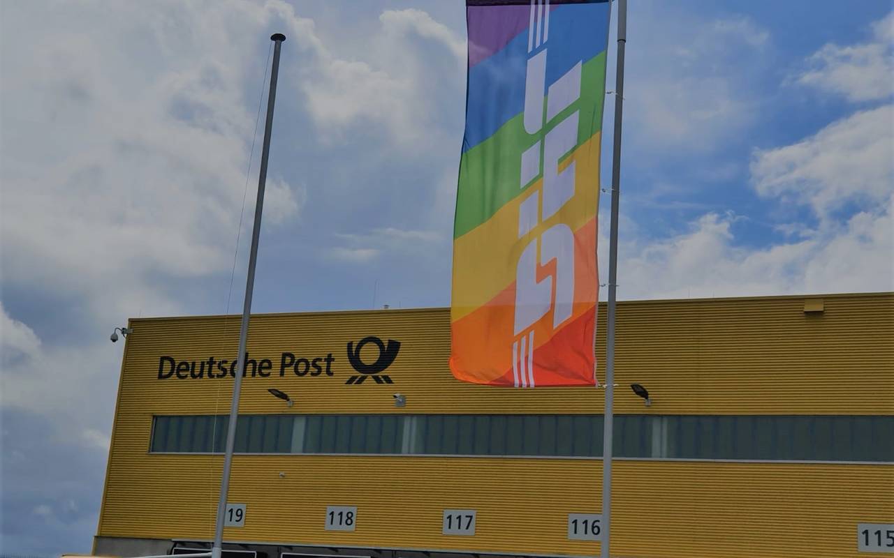 Die Regenbogenflagge weht seit heute am Paketzentrum im Lennetal. Die Deutsche Post DHL will damit ein Zeichen für Toleranz und Akzeptanz setzen. Bundesweit wehen die bunten Flaggen an über 400 Verteil-, Post- und Paketzentren.