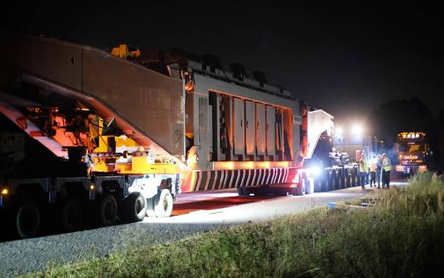 Die tonnenschweren Trafos sind am Wochenende gut in Garenfeld angekommen. Sie kamen in zwei Schwertransportern vom Bahnhof Iserlohn Hennen. Die mit Ladung über 500 Tonnen schweren Fahrzeuge brauchten zwei Tage für die Strecke von 30 Kilometern.