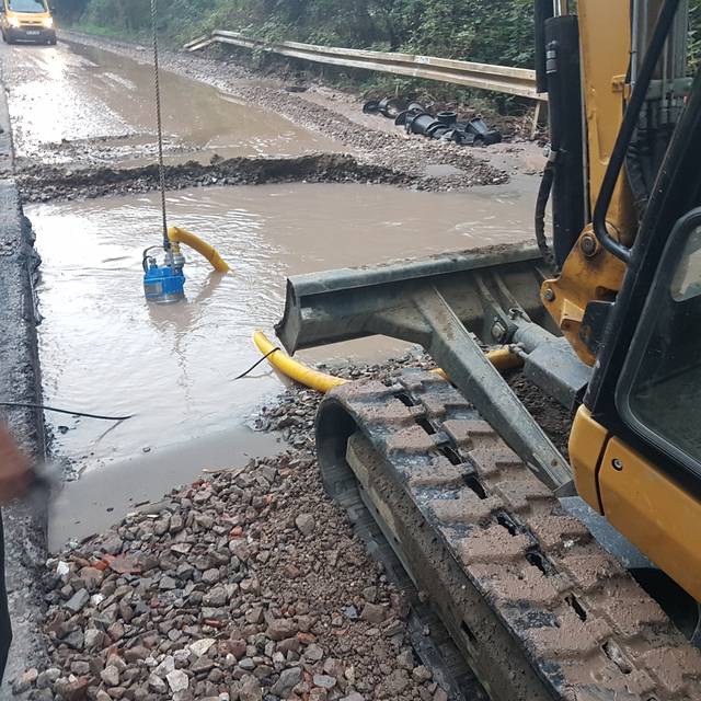 Die Stadtgartenallee wird heute Morgen zum Teil geflutet. Dort gibt es offenbar einen größeren Wasserrohrbruch. Auch die Asphaltdecke hat sich schon gelöst.