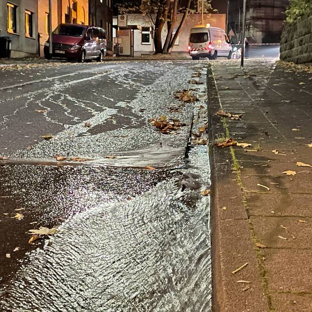 Betroffen ist auch die Richard-Wagner-Straße. Die Polizei hat den Bereich abgesperrt. Techniker von Enervie sind vor Ort, um den Schaden zu richten.